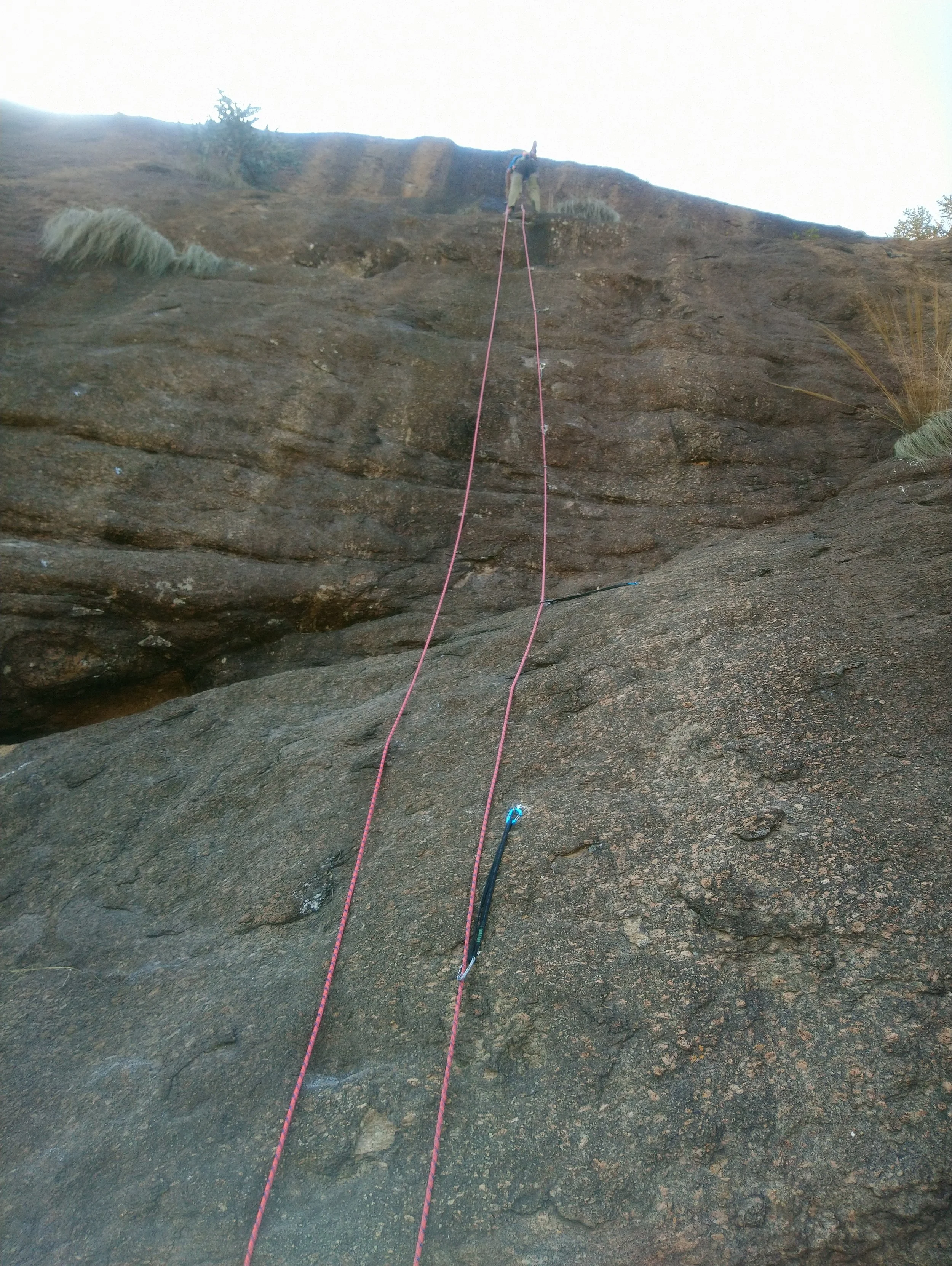 A key difference I find in this experience is the rush I feel on leading a route. It is entirely different from climbing a boulder problem in the comfort of a gym with a thick mat to catch your fall. We are out in the open. In the wild. I can feel the heat of the sun on my neck as I push through a route. I can feel my heart race as I place my foot on a tiny piece of rock, hoping that it doesn’t flake. Luckily, the rock around Bangalore is granite (its tough). While I lead the route, I am only clipped a meter or two above or below me, meaning, I can have a whipping fall a few meters down. Assuming, of course that I clipped my rope in correctly and the quick draw holds. To clarify, taking a fall of two to four meters, is certainly quite OK. In fact, not getting over the fear of falling can be limiting to your performance. However, it is scary nevertheless.